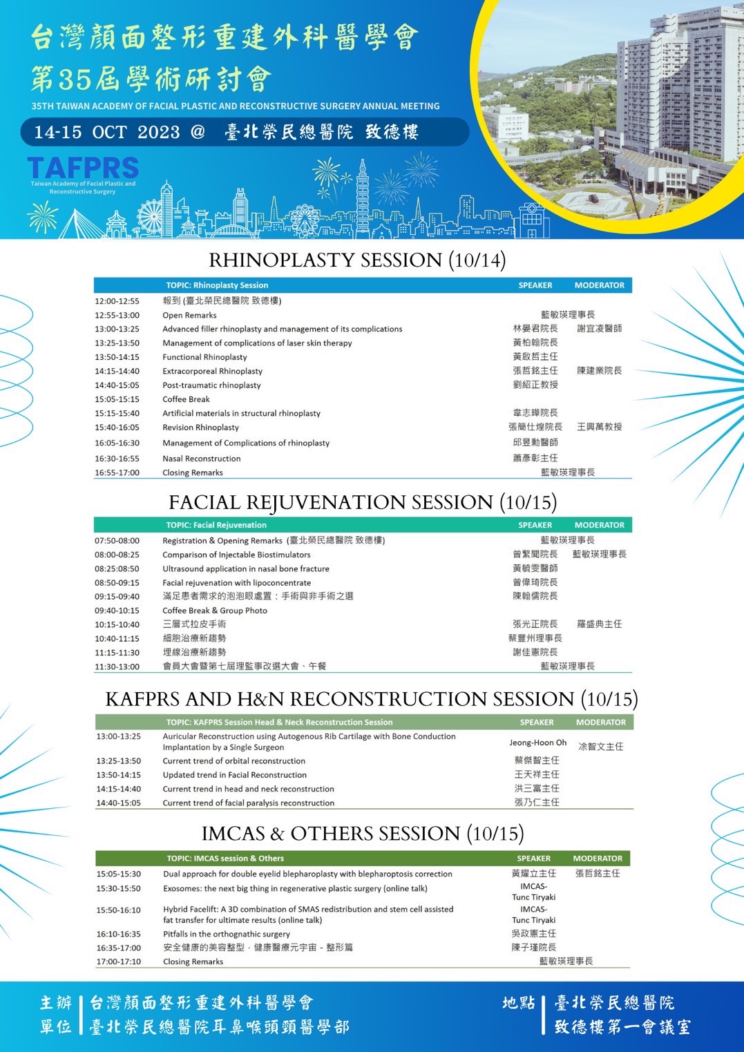 【活動轉知】2023年台灣顏面整形重建外科醫學會第35屆秋季...